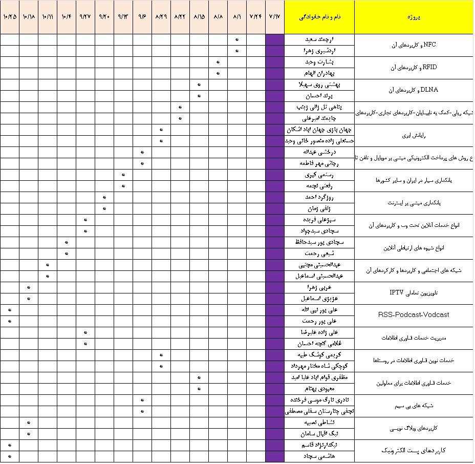 توجه: جایی که علامت ستاره گذاشته شده تاریخ ارائه دانشجو می باشد و خارج از این تاریخ به هیچ وجه ارائه پذیرفته نیست.
